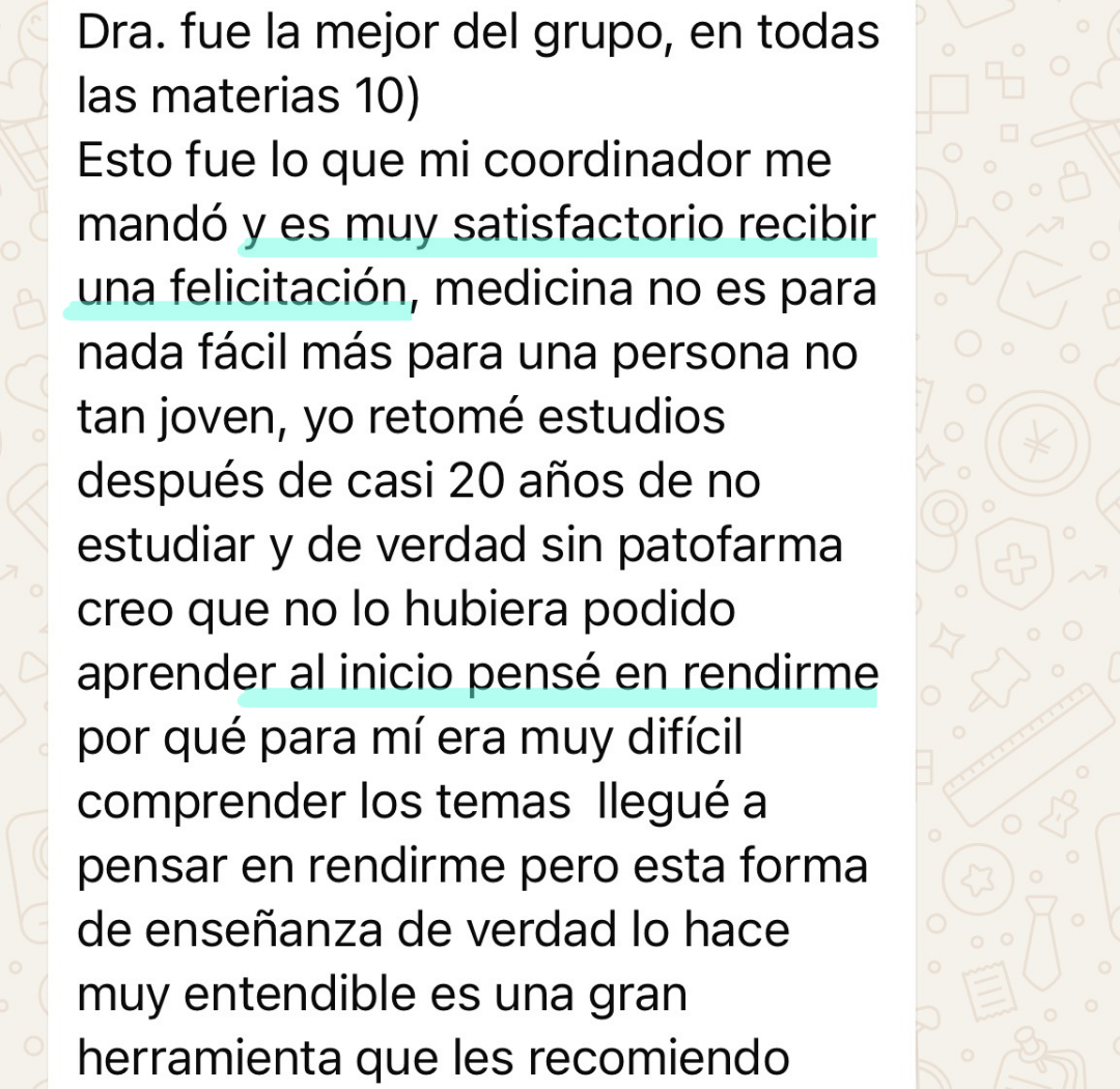 Como Alejandra Castillo de la UNAM... que reprobó farma y estaba pensando en dejar la carrera... pero sacó 95 en su examen de recuperación de antibióticos... y 100 en el de diabetes...